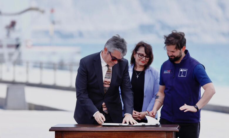 Presidente Gabriel Boric junto a ministros de Hacienda y Minería promulgan ley de Royalty Minero