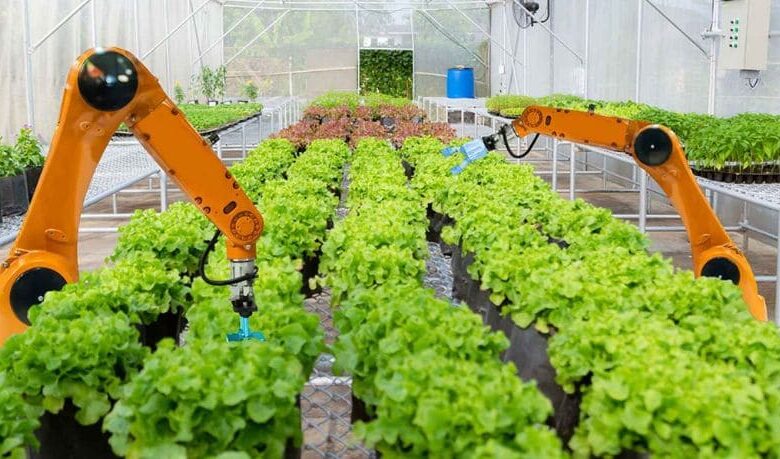 Maquinaria Automatizada: Robots para siembra, cosecha y procesamiento de alimentos que aumentan la eficiencia y reducen la dependencia de mano de obra.