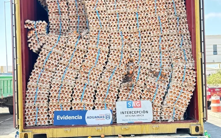 En el camión, que supuestamente estaba vacío, además se hallaron 870 kilos de productos agrícolas, 390 unidades de plaguicidas y 480 cajetillas de cigarrillos. En el marco del trabajo colaborativo entre el Servicio Agrícola y Ganadero (SAG) y el Servicio Nacional de Aduanas, además de las policías, se desarrolló un operativo de fiscalización que permitió interceptar un importante cargamento de productos agropecuarios de ingreso clandestino desde Bolivia, reforzando las acciones de control sanitario y contrabando en la frontera norte del país. La acción fue liderada por el equipo del Centro Integrado de Inspección y Monitoreo de Seguridad (CIIMS) del SAG y funcionarios de la Aduana Regional de Arica, quienes activaron los protocolos de inspección y verificación, confirmando la procedencia ilegal de los productos. El operativo comenzó con alertas emanadas desde Carabineros y la Policía de Investigaciones, por lo que al detectarse la presencia del camión sospechoso en la frontera manifestando un contenedor vacío, funcionarios de Aduanas al fiscalizar el contenedor descubrieron la presencia de gran cantidad de bandejas con huevos. Por lo que el vehículo fue escoltado desde el paso fronterizo Chungará hasta el Puerto de Arica para ser revisado con el portal escáner de Aduanas. Las imágenes de rayos X revelaron que la zona de carga del vehículo no estaba vacía, como había sido declarado por el conductor boliviano de iniciales B.F.M, sino que estaba repleta de diversos tipos de mercancías. De manera conjunta, Aduanas y SAG realizaron la apertura y revisión detallada de todo el cargamento, descubriéndose el millonario contrabando: 400 mil huevos de origen boliviano, 480 cajetillas de cigarrillos marca Gift, 390 unidades de plaguicidas, 870 kilos de frutas y 240 unidades de rollos de papel higiénico. El Director Regional del SAG, Álvaro Alegría Matus, destacó que este tipo de procedimientos refleja la eficacia del trabajo conjunto en frontera. “La coordinación con Aduanas es fundamental para prevenir el ingreso de productos que ponen en riesgo la sanidad agropecuaria y la salud pública. Nuestro compromiso es seguir reforzando las acciones de fiscalización y resguardo del patrimonio fito y zoosanitario del país”, señaló. Por su parte, el Director Regional (s) de Aduanas, James Alarcón Contreras, subrayó la importancia de la colaboración entre los servicios públicos en los controles fronterizos. “El camino para enfrentar las diversas formas de crimen organizado y lo intentos de vulnerar las fronteras, es a través del trabajo conjunto con las otras instituciones y el uso de todas las capacidades de los funcionarios y herramientas tecnológicas con que contamos“.