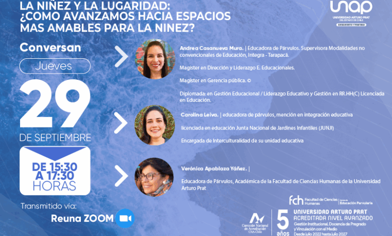 La Facultad de Ciencias Humanas de la Universidad Arturo Prat (UNAP) desarrollará el conversatorio online “La niñez y la lugaridad: ¿Cómo avanzamos hacia espacios más amables para la niñez?” el cual se realizará este jueves 29 de septiembre a partir de las 15:30 horas a través de la plataforma Zoom.